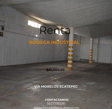 Renta de bodega industrial en Ecatepec, Via Morelos, cuenta con 450 m2.